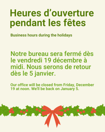 SADCTemps des fêtes 25-26 | Fermeture des bureaux de la SADC de la région de Coaticook Inscription au webinaire : Vers un milieu de travail plus inclusif